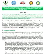 Pour la saison des pluies 2025, il est attendu des cumuls pluviométriques moyens à excédentaires au Sahel, avec des dates de démarrage précoces à normales, des dates de fin tardives à moyennes, des séquences sèches longues à moyennes au Centre et des écoulements supérieurs aux moyennes dans les principaux bassins fluviaux..